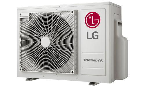 Tepelné čerpadlá LG Therma V Split R32 S sú vybavené vonkajšou jednotkou s jedným ventilátorom a kompaktným sivým dizajnom. Konštrukcia je optimalizovaná pre spoľahlivú, tichú a energeticky efektívnu prevádzku. Zariadenie využíva ekologické chladivo R32 a je určené na vykurovanie, chladenie a ohrev teplej vody v rodinných domoch. Vonkajšia jednotka umožňuje inštaláciu až 50 metrov od vnútornej jednotky, čo zaisťuje vysokú flexibilitu pri umiestnení systému.